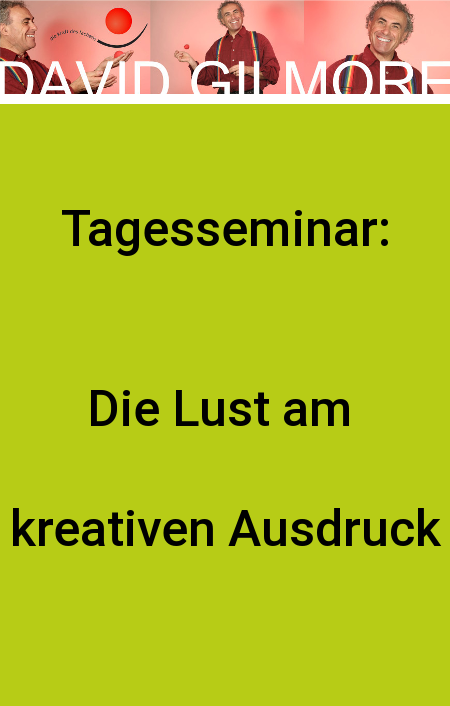 David Gilmore führt humorvoll in die Welt des unmittelbaren Ausdrucks und der spielerischen Kreation ein, sowohl was sowohl dem eigenen als auch den im Kontakt mit dem Gegenüber. Es werden Übungen angeboten, die den Ausdruck auf seinen Ursprung im Körper in Verbindung mit Stimme und Wort reduzieren und damit leicht zugänglich und nachvollziehbar machen. Es werden Techniken und Anregungen aus der Theaterimprovisation und dem Improvisationstheater genutzt, um die eigene kreative Lebensfreude zu unterstützen.